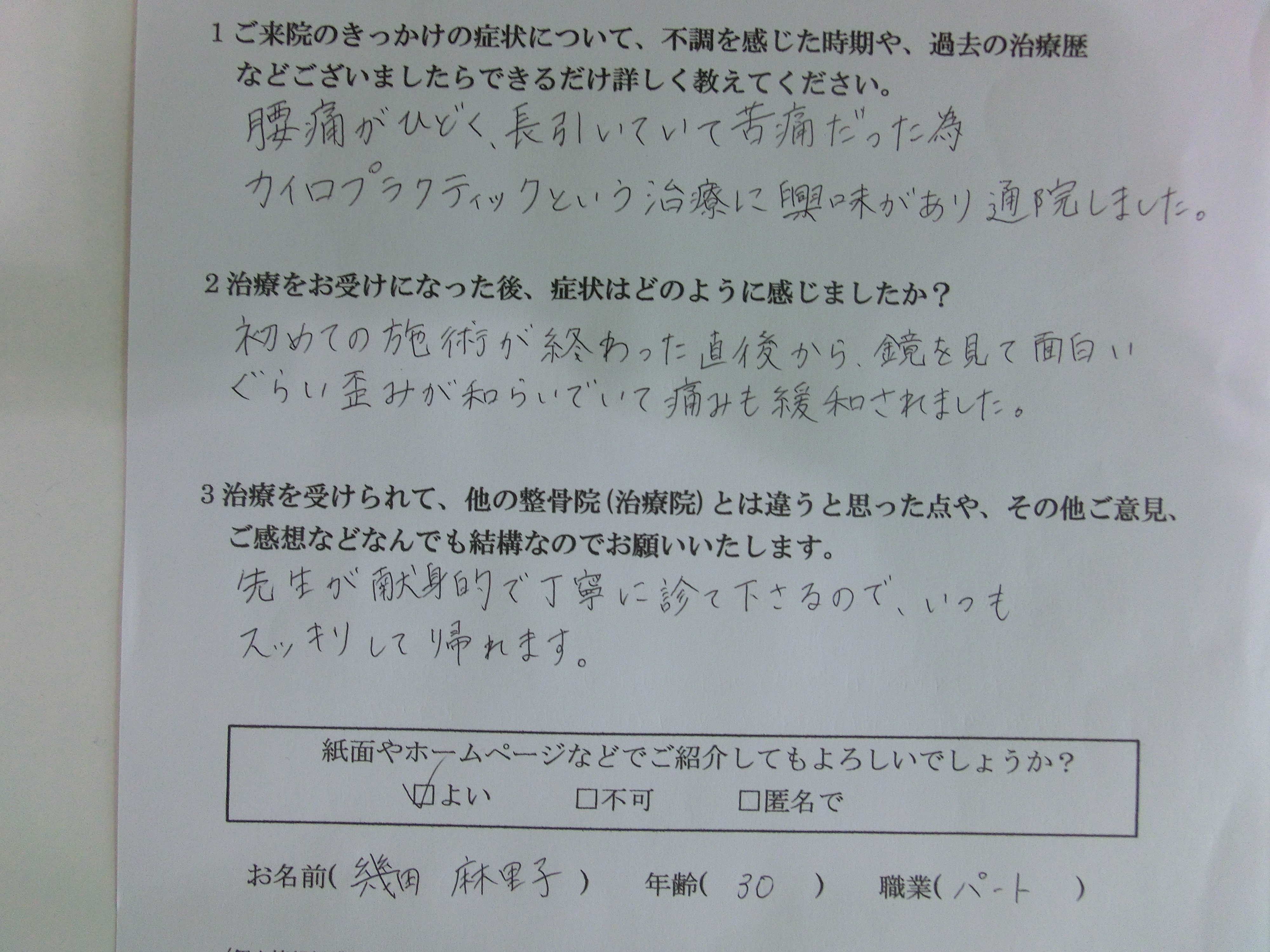 3,治療をうけられて、他の整骨院(治療院)とは違うと思った点や、
